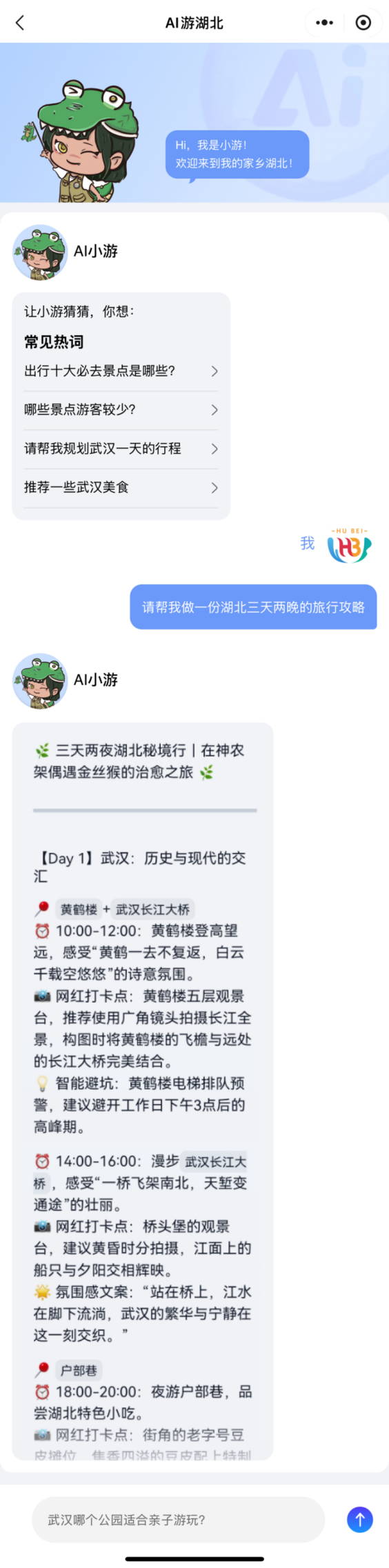 接入DeepSeek,湖北文旅集團(tuán)實現(xiàn)人工智能技術(shù)深度應(yīng)用重大突破。在湖北文旅集團(tuán)數(shù)智化戰(zhàn)略的驅(qū)動下,數(shù)旅集團(tuán)深入推進(jìn)人工智能技術(shù)深度應(yīng)用項目。近日,“游湖北”平臺上線“AI游湖北”板塊,無論是行程規(guī)劃、景點介紹,還是實時天氣查詢、景區(qū)客流預(yù)警,都能輕松實現(xiàn)。自2024年第四季度項目啟動以來,技術(shù)團(tuán)隊巧妙借助國產(chǎn)大模型DeepSeek的強(qiáng)大效能,一舉斬獲兩項重大突破:搭建企業(yè)級知識庫系統(tǒng)、完成智能旅游行程助手設(shè)計,為文旅行業(yè)的智能化變革注入了澎湃新動能。未來,數(shù)旅集團(tuán)將繼續(xù)深化人工智能技術(shù)的應(yīng)用,探索更多創(chuàng)新場景,推動文旅行業(yè)的數(shù)字化轉(zhuǎn)型,為用戶創(chuàng)造更優(yōu)質(zhì)的智能化服務(wù)體驗。