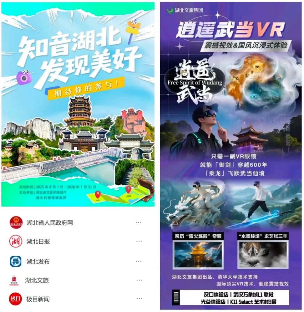 “知音湖北”攜手“逍遙武當(dāng)”共繪數(shù)字荊楚新畫卷。近期,“知音湖北 發(fā)現(xiàn)美好”全媒體征集活動(dòng)正式啟動(dòng)。數(shù)旅集團(tuán)“逍遙武當(dāng)”VR沉浸體驗(yàn)作為官方指定禮品,將武當(dāng)山72峰、36巖、24澗、九宮八觀以LBE大空間技術(shù)高仿真復(fù)刻,動(dòng)捕、光影、音效三維一體,讓游客在城市商圈即可沉浸式領(lǐng)略武當(dāng)神韻。項(xiàng)目6月亮相武漢萬象城、光谷K11,即登頂大眾點(diǎn)評(píng)、美團(tuán)、抖音區(qū)域VR人氣榜,下一步將以授權(quán)模式走向全國,持續(xù)講好湖北故事,傳播荊楚文化。